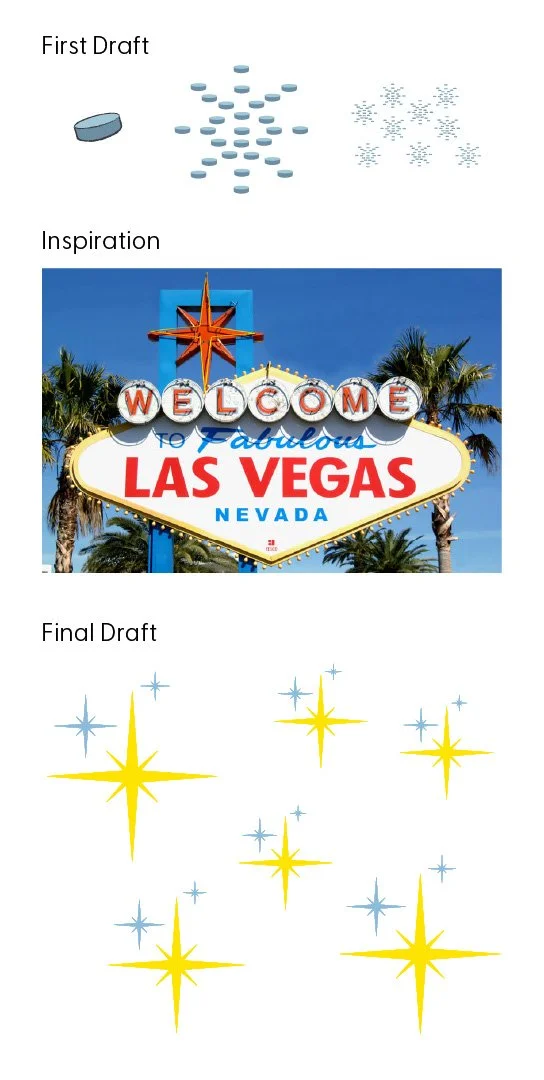 One of the starflakes was placed on top of the dot of the ‘i’ with a fill of yellow to give it an accent. The words “Las Vegas” and “Hockey,” previously tinted in a lighter blue, were tinted yellow for contrast.