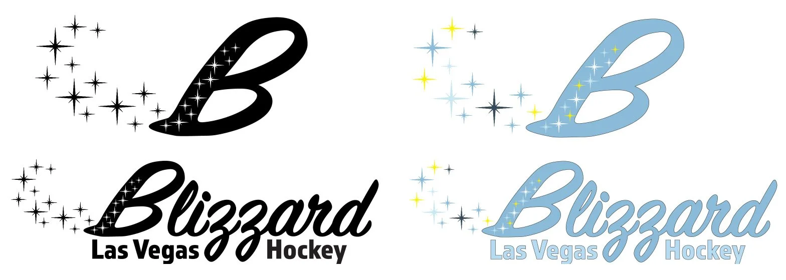 The placement of “Las Vegas,” if alone, unbalanced the logo. It was moved to the top right over Blizzard and nestled in to fit below the height of the ‘B.’ “Hockey” remains in the same space, if needed.