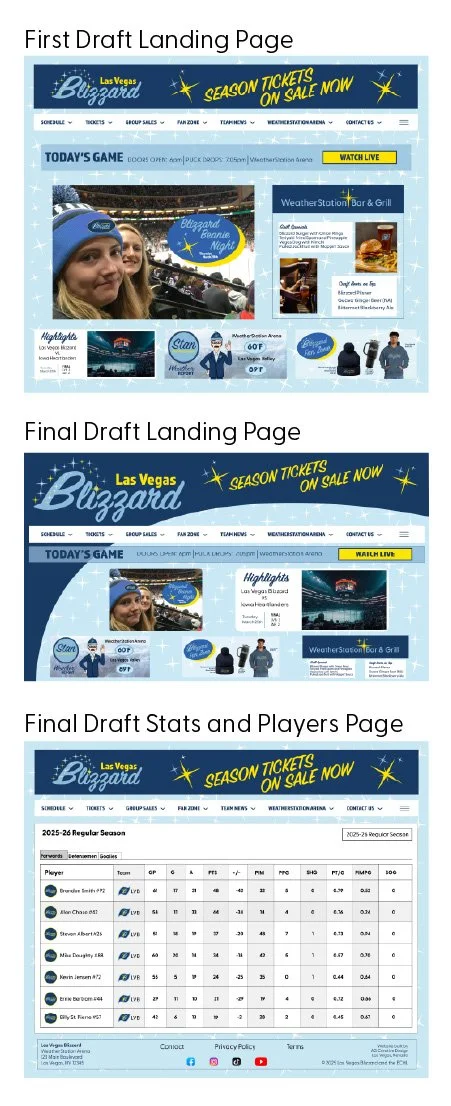 The billboard designed for this project is a teaser to promote the team before it is officially announced to Las Vegas. It features a swirl of starflakes, blowing in like the beginning of a blizzard. The main text reads “Blizzard’s a-comin’” to introduce the team name. The language is an idiomatic way to announce an impending storm, with a nod to the pioneers of the old west and the frenzy of knowing a big storm is on its way.
